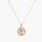 Hand-painted pink enamel flowers rest on a soft freshwater pearl background, creating a romantic and refined design. The warm 18K gold-plated finish enhances the elegant look and gives the piece a timeless charm.