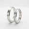 The men's ring features a round groove in the center , which subtly contrasts with the angular outer edges. The women's ring harmoniously complements this, adding a central stone line , evenly spaced and carefully integrated into the center of the ring.