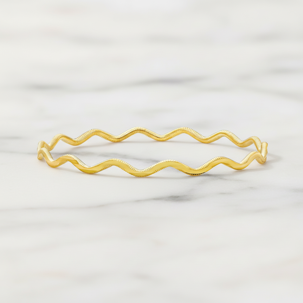 Het subtiel golvende ontwerp weerspiegelt een speelse maar elegante energie, waardoor dit stuk perfect is voor zowel dagelijkse verfijning als bijzondere gelegenheden.