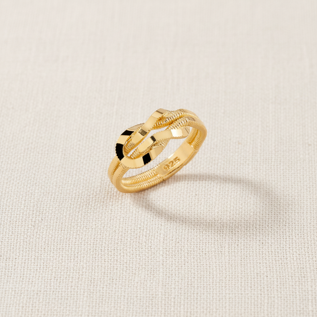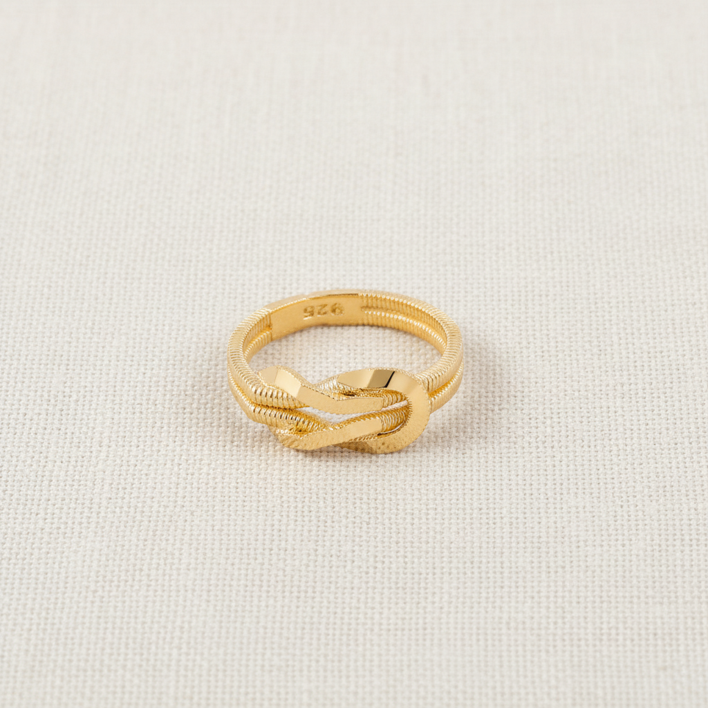 De Luna Amara ring straalt verfijnde eenvoud uit met haar zachte lijnen en tijdloze knoopdesign — een symbool van verbondenheid en elegantie.